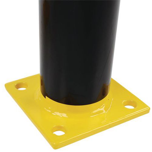 Arceau de protection de construction robuste pour la sécurisation de vos angles. Revêtement noir/jaune pour signaler le danger de façon visible. Fixation via platine à sceller.