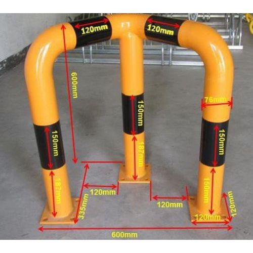 Arceau de protection de construction robuste pour la sécurisation de vos angles. Revêtement noir/jaune pour signaler le danger de façon visible. Fixation via platine à sceller. Garantie client : 10 ans