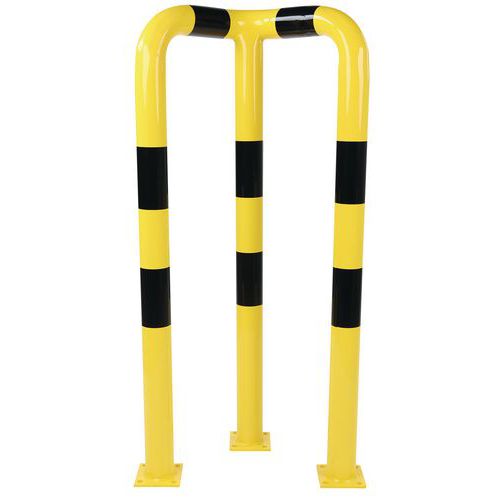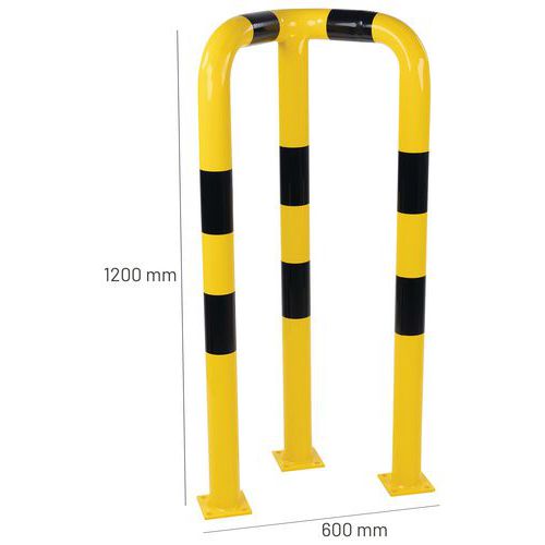 Arceau de protection de construction robuste pour la sécurisation de vos angles. Revêtement noir/jaune pour signaler le danger de façon visible. Fixation via platine à sceller.