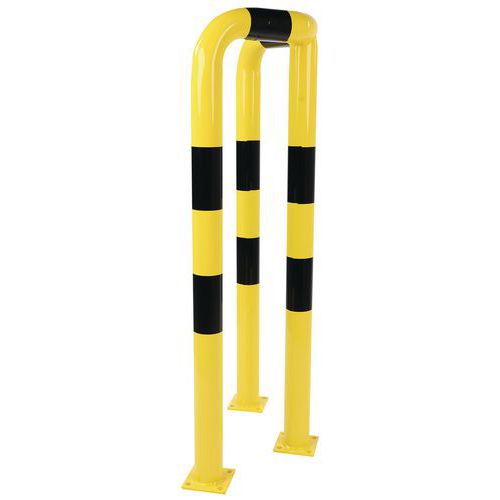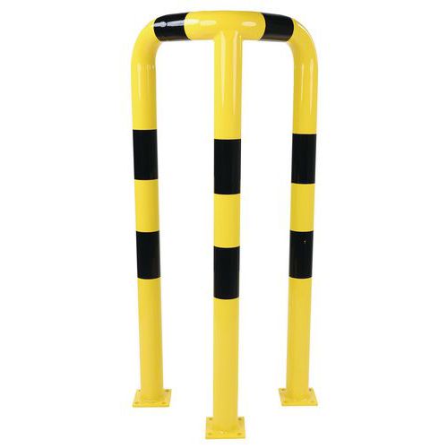 Arceau de protection de construction robuste pour la sécurisation de vos angles. Revêtement noir/jaune pour signaler le danger de façon visible. Fixation via platine à sceller. Garantie client : 10 ans
