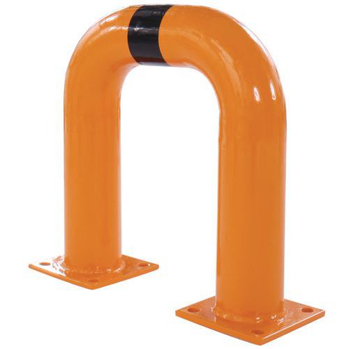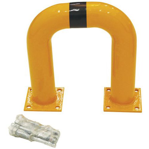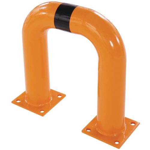 Arceau de protection contre les chocs des véhicules et engins circulant en entrepôt. Peut également servir à protéger les piétons en bloquant l'accès aux engins roulants. Revêtement noir/jaune pour signaler le danger de façon visible. Robuste grâce à sa fabrication en acier. Fixation via platine à sceller.