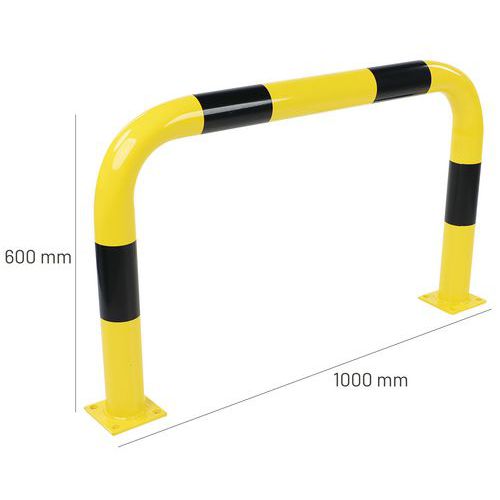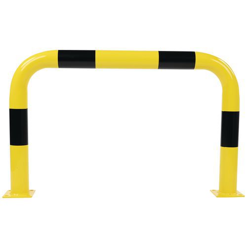 Arceau de protection contre les chocs des véhicules et engins circulant en entrepôt. Peut également servir à protéger les piétons en bloquant l'accès aux engins roulants. Revêtement noir/jaune pour signaler le danger de façon visible. Robuste grâce à sa fabrication en acier. Fixation via platine à sceller. Garantie client : 10 ans
