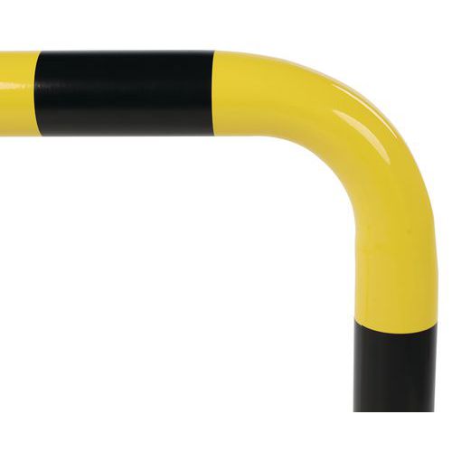 Arceau de protection contre les chocs des véhicules et engins circulant en entrepôt. Peut également servir à protéger les piétons en bloquant l'accès aux engins roulants. Revêtement noir/jaune pour signaler le danger de façon visible. Robuste grâce à sa fabrication en acier. Fixation via platine à sceller.