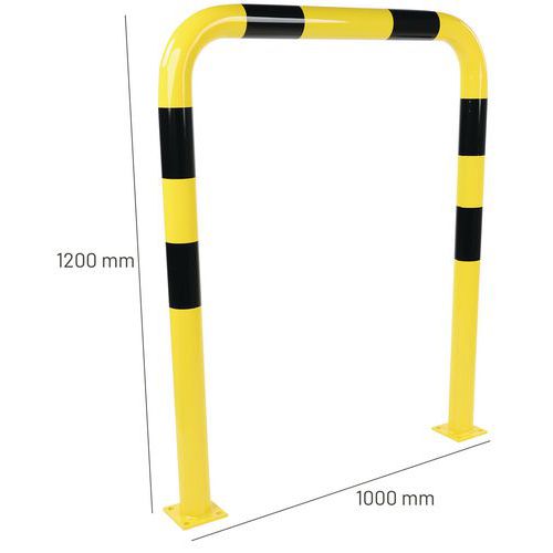 Arceau de protection contre les chocs des véhicules et engins circulant en entrepôt. Peut également servir à protéger les piétons en bloquant l'accès aux engins roulants. Revêtement noir/jaune pour signaler le danger de façon visible. Robuste grâce à sa fabrication en acier. Fixation via platine à sceller.