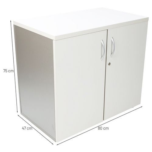 Armoire Quatuor 2 portes battantes pour des dossiers bien rangés Structure panneau de particules. Poignée métal coloris alu. Serrure à clés (2 clés livrées). Fabriqué en France. Profondeur utile 45 cm, hors tout 47 cm. Equipée de vérin de réglage, réglable de l'intérieur. Livrée prête à monter avec notice.