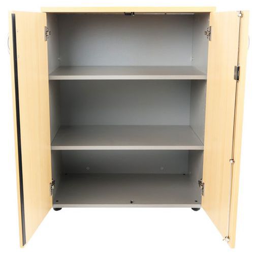 Armoire Quatuor 2 portes battantes pour des dossiers bien rangés Structure panneau de particules. Poignée métal coloris alu. Serrure à clés (2 clés livrées). Fabriqué en France. Profondeur utile 45 cm, hors tout 47 cm. Equipée de vérin de réglage, réglable de l'intérieur. Livrée prête à monter avec notice.