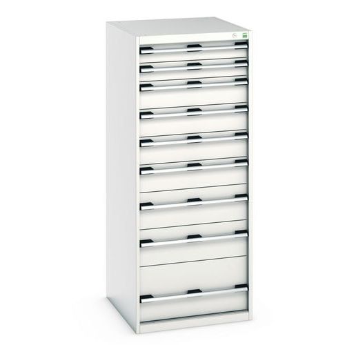 Armoire à 9 tiroirs Cubio avec équerres de renfort pour une meilleure rigidité.