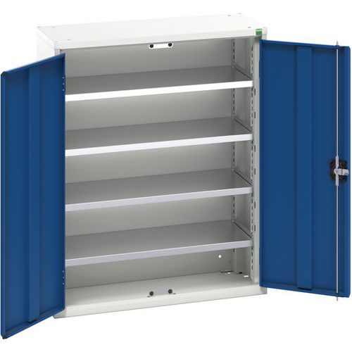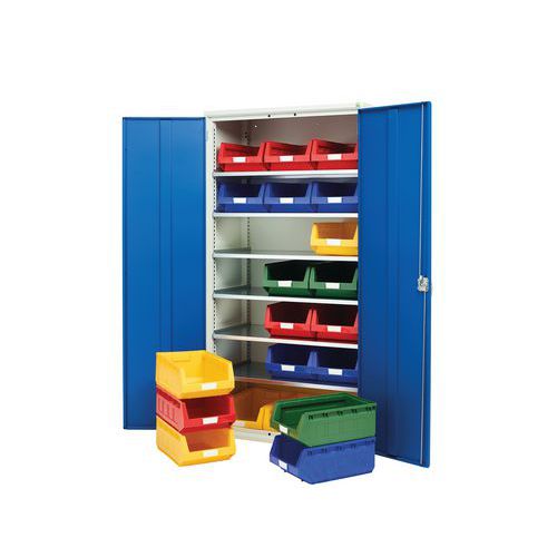 Portes renforcées, fermeture par crémone 3 points Tablettes en acier galvanisé, charge 60 Kg Livrées avec les bacs dans la couleur présentée Dimensions des bacs (LxPxH mm): No.3 - 145 x 240 x 125, No.5 - 303 x 485 x 190 Conseils de sécurité : - installer le meuble sur une surface plane - le fixer sur un mur ou une cloison avec une fixation adaptée - veiller à ne pas dépasser la charge maximum conseillée, ainsi qu’à sa bonne répartition Fabriqué au RU Charge maxi (kg) : 1000 Charge maxi par tablette (kg) : 75