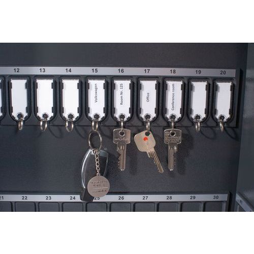 L’armoire à clés Magnettag est fournie avec 10 porte-clés magnétiques .