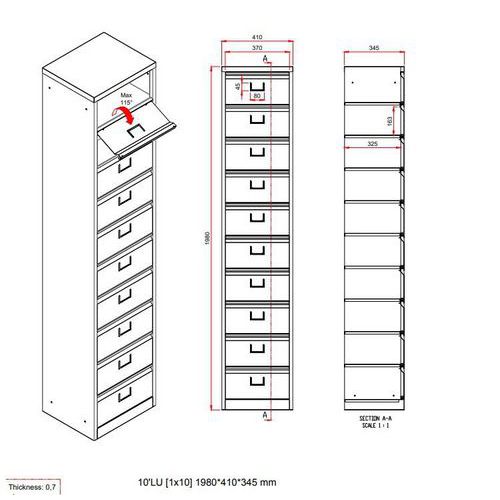 | Intitulé du produit | Armoire à dossiers avec rabat, Hauteur hors tout: 198 cm, Largeur hors tout: 41 cm |