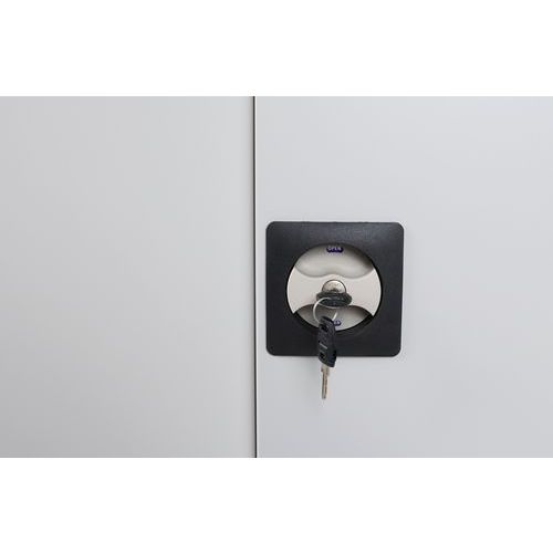 Structure avec fond et portes perforés. Hauteur de tablette ajustable par pas de 3,6 cm. Portes verrouillables : fermeture 2 points et serrure à cylindre. Armoire confortable grâce à ouverture de porte 180°. Conseils de sécurité : - installer le meuble sur une surface plane - le fixer sur un mur ou une cloison avec une fixation adaptée - veiller à ne pas dépasser la charge maximum conseillée, ainsi qu’à sa bonne répartition Garantie client : 10 ans