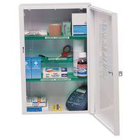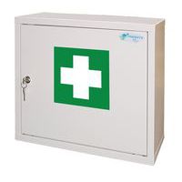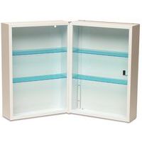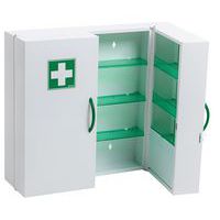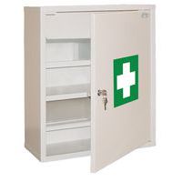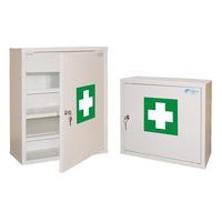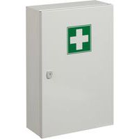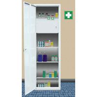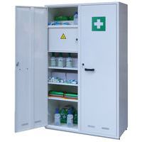 - Armoire d'infirmerie monobloc en tôle d'acier robuste.