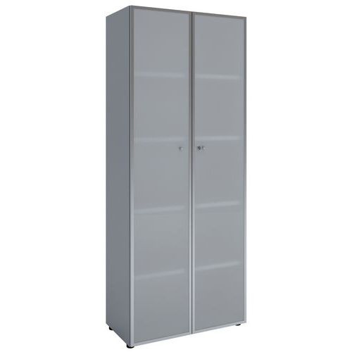 Choisissez cette armoire au design épuré avec une structure couleur aluminium et des portes en verre dépoli.