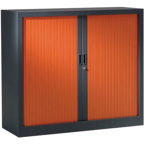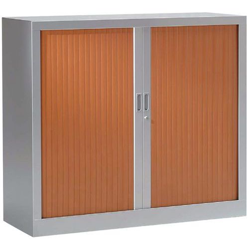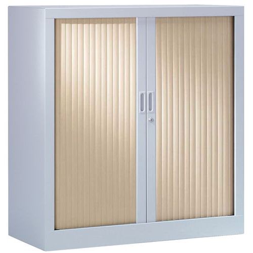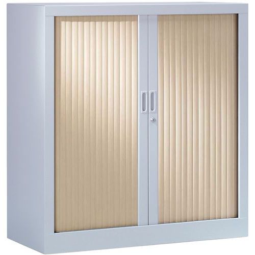 Armoire à rideaux monobloc. Etagères réglables équipées pour recevoir des dossiers suspendus. Fond plat et 4 vérins de réglages. Serrure avec 2 clés à embouts pliants. Rideaux à ouverture totale et poignées encastrées. Optez pour une armoire fonctionnelle, rigide et robuste