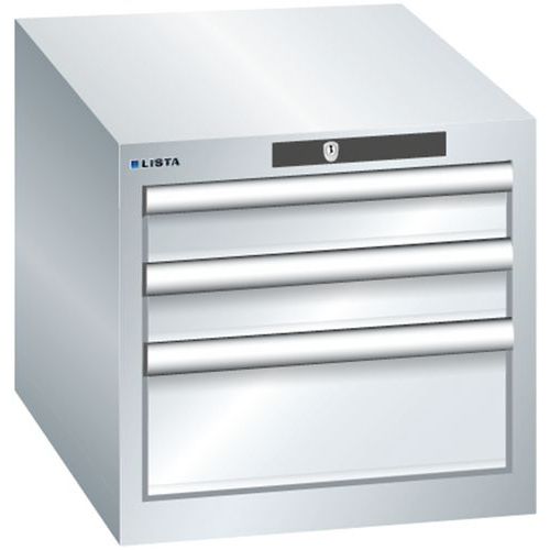 Grande stabilité bâti pouvant supporter jusqu’à 4 t, tiroirs pouvant supporter jusqu’à 75 ou 200 kg Utilisation optimale grâce à l’extension totale et la hauteur frontale optimale des tiroirs Excellente protection contre la poussière, les liquides et l’usure mécanique grâce à un bâti fermé avec surface résistant aux chocs et à l’abrasion Sécurité à toute épreuve sécurité anti-décrochage qui empêche le tiroir de tomber et blocage individuel des tiroirs (système anti-basculement) Protection contre la corrosion grâce à une peinture à immersion par électrophorèse et à la peinture par pulvérisation Rangement et organisation optimisés grâce au matériel de subdivision LISTA adapté à chaque application et aux tiroirs munis de fentes et perforations Étiquetage professionnel avec le logiciel d’étiquetage LISTA Script et la barre de préhension rabattable pour l’insertion des étiquettes Déplacement parfaitement silencieux grâce à la glissière sans traverse Charge maxi (kg) : 75 kg