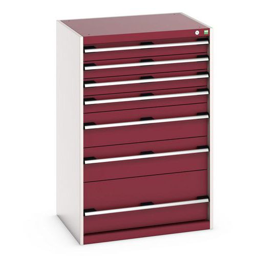 Poignées ergonomiques permettant le passage de la main par de dessus ou le dessous, système de blocage des tiroirs en standard, verrouillage individuel des tiroirs disponible en option.