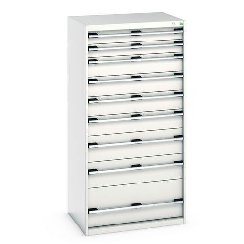 Armoire à 9 tiroirs Cubio avec équerres de renfort pour une meilleure rigidité.