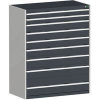 Armoire à tiroirs Cubio, Charge maxi: 1500 kg, Matériau: Acier, Hauteur hors tout: 1600 mm, Nb de tiroirs: 9