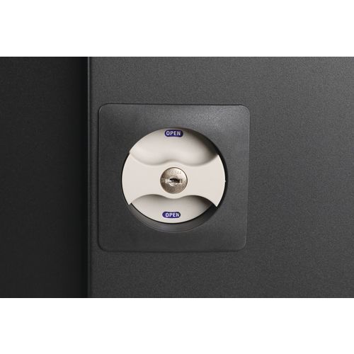 Armoire à portes battantes silencieuses avec amortisseurs antibruit.