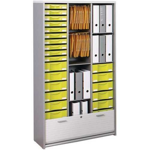 - 4 tablettes métal équipées pour dossiers suspendus.
