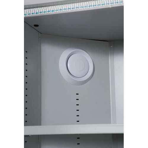 L’aération est assurée par des vannes à disque situées en haut et en bas du coin intérieur gauche de l’armoire, les vannes sont reliées par un conduit d’aération vertical intégré (Ø 105 mm).