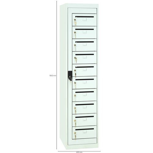| Intitulé du produit | Armoire courrier 10 cases sur socle, Matériau: Acier, Nb de cases/colonne: 10, Colonne largeur: 400 mm |