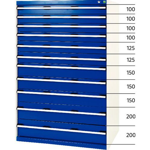 | Intitulé du produit | Armoire d'atelier à tiroirs Bott SL-107, Charge maxi: 1500 kg, Matériau: Acier, Hauteur hors tout: 1600 mm |