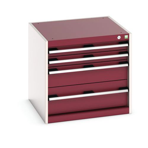 Armoire à tiroirs très robuste et de haute qualité. Tiroirs extractibles et pleinement accessibles. Glissières avec fermeture automatique et blocage de sécurité empêchant l'ouverture intempestive. Les poignées des tiroirs peuvent accueillir une étiquette. Avec verrouillage central des tiroirs.