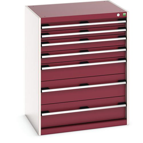 Armoire à tiroirs très robuste et de haute qualité. Tiroirs extractibles et pleinement accessibles. Glissières avec fermeture automatique et blocage de sécurité empêchant l'ouverture intempestive. Les poignées des tiroirs peuvent accueillir une étiquette. Avec verrouillage central des tiroirs. Conseils de sécurité : - installer le meuble sur une surface plane - le fixer sur un mur ou une cloison avec une fixation adaptée - veiller à ne pas dépasser la charge maximum conseillée, ainsi qu’à sa bonne répartition Fabriqué au RU Charge maxi (kg) : 1500