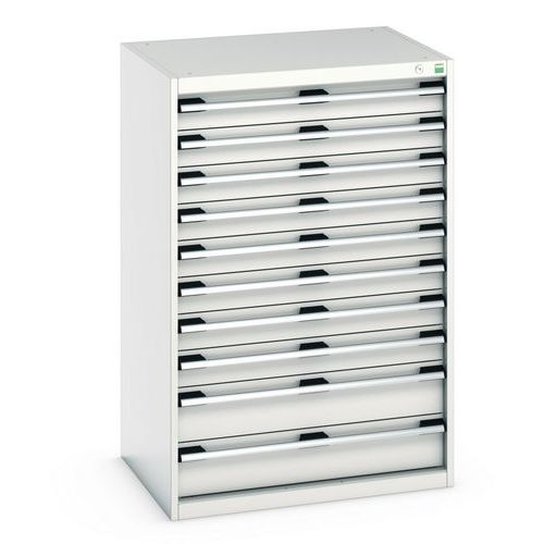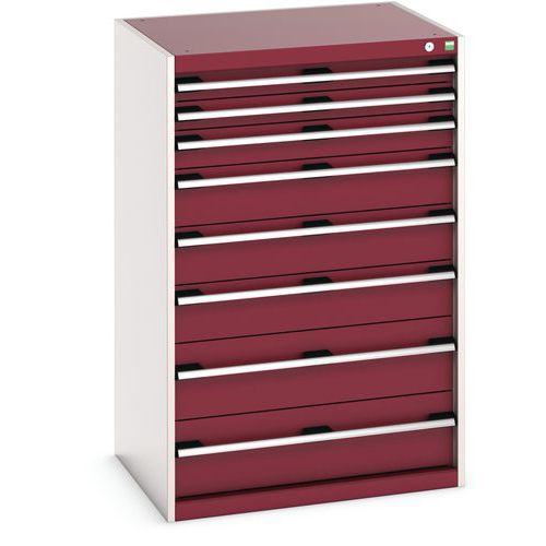 Armoire à tiroirs très robuste et de haute qualité. Tiroirs extractibles et pleinement accessibles. Glissières avec fermeture automatique et blocage de sécurité empêchant l'ouverture intempestive. Les poignées des tiroirs peuvent accueillir une étiquette. Avec verrouillage central des tiroirs. Conseils de sécurité : - installer le meuble sur une surface plane - le fixer sur un mur ou une cloison avec une fixation adaptée - veiller à ne pas dépasser la charge maximum conseillée, ainsi qu’à sa bonne répartition Fabriqué au RU Charge maxi (kg) : 1500