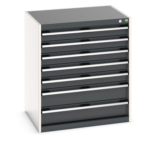 Armoire à tiroirs très robuste et de haute qualité. Tiroirs extractibles et pleinement accessibles. Glissières avec fermeture automatique et blocage de sécurité empêchant l'ouverture intempestive. Les poignées des tiroirs peuvent accueillir une étiquette. Avec verrouillage central des tiroirs. Fabriqué au RU Charge maxi (kg) : 1500