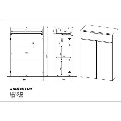 Armoire de bureau avec tiroir GW-Mailand, Hauteur hors tout: 1200 mm, Largeur hors tout: 810 mm