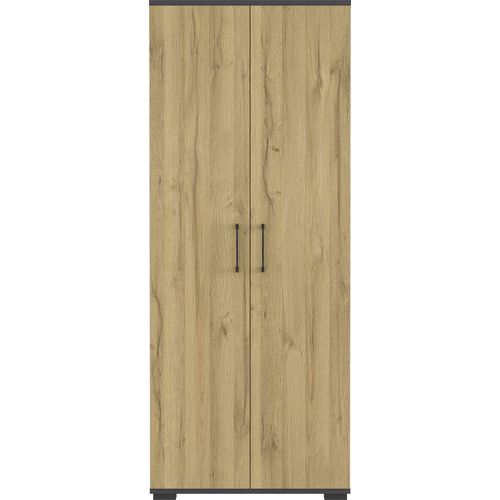 Armoire bureau avec deux portes, derrière lesquelles se trouvent deux étagères fixes (chacune pouvant supporter une charge de 22 kg), ce qui permet d'obtenir trois compartiments à hauteur de classeur. Etagère supérieure pouvant supporter une charge de 22 kg, étagère inférieure pouvant supporter une charge de 30 kg. Deux poignées en métal revêtu par poudre et quatre pieds en plastique. Revêtement de surface résistant aux rayures et à l'usure. Bords résistants aux chocs et aux coups.