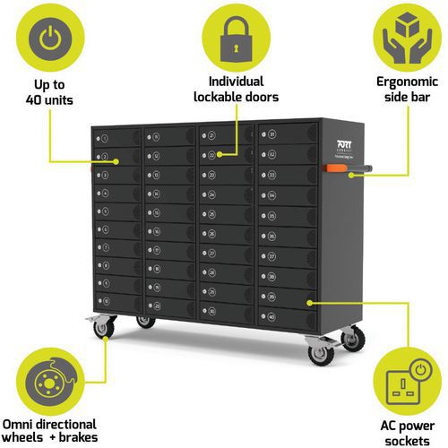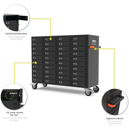 Cabinet de charge 40 prises secteur avec portes individuelles verrouillables.