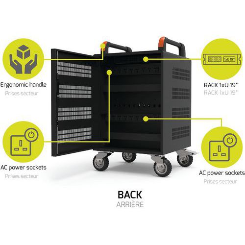 | Intitulé du produit | Armoire de charge mobile, Nb de cases: 2, Case largeur utile: 298 mm, Case profondeur utile: 360 mm |