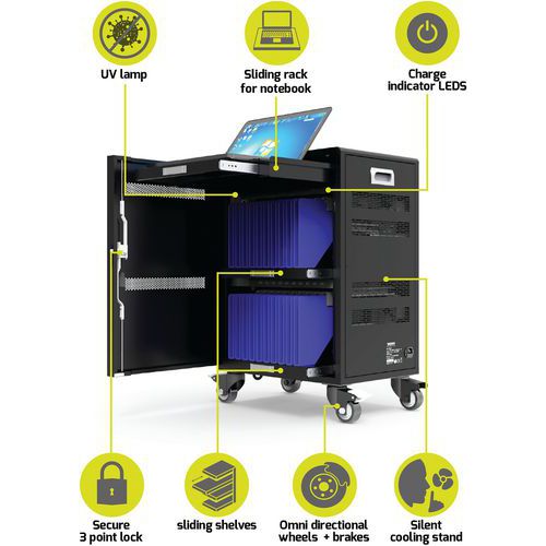 | Intitulé du produit | Armoire de charge mobile, Nb de cases: 2, Case largeur utile: 220 mm, Case profondeur utile: 308 mm |