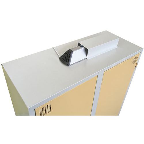 Armoire de désinfection rapide, efficace et économique avec technologie Ozone. Tablette largement perforée pour libre circulation et bonne ventilation de l’Ozone. Armoire avec capot de protection ainsi que témoin de fonctionnement de l'Air Care. Produit conçu et fabriqué en France. Solution Ozone : désinfection totale en temps record des vêtements et outils !