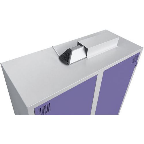 Armoire de désinfection rapide, efficace et économique avec technologie Ozone. Tablette largement perforée pour libre circulation et bonne ventilation de l’Ozone. Armoire avec capot de protection ainsi que témoin de fonctionnement de l'Air Care. Produit conçu et fabriqué en France. Solution Ozone : désinfection totale en temps record des vêtements et outils !