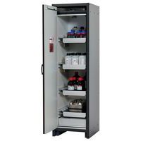 Stockage sécurisé, conforme à la réglementation en vigueur des produits dangereux, inflammables dans les zones de travail Fonction / Construction : Robuste et durable : structure extérieure solide en plaques ignifugées revêtues d'une résine de mélamine, 3 charnières de fixation de porte, mécanisme de fermeture complet et éléments de sécurité protégés contre la corrosion montés hors de la zone de stockage, porte de qualité, résistante aux rayures avec surface structurée revêtue époxy Ergonomique : la porte restent à la position lors de l´ouverture, fermeture automatique en cas d'incendie Utilisation controlée : porte verrouillable, compatible avec fermeture centralisée Transport facile : socle de transport intégré, en option plinthe de finition simple ou plinthe complétée de 4 pieds de mise à niveau Aération et ventilation : système d'aération et de ventilation intégrés pour le raccordement (diamètre 75 mm) à un dispositif technique d'évacuation d'air Fabriqué en Allemagne Charge maxi (kg) : 600