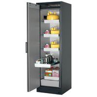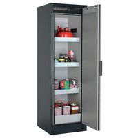 Stockage sécurisé, conforme à la réglementation en vigueur des produits dangereux, inflammables dans les zones de travail Fonction / Construction : Robuste et durable : structure extérieure acier, résistante aux rayures, peinture époxy, 3 charnières de fixation de porte, fermeture protégé contre la corrosion Ergonomique : la porte restent à la position lors de l´ouverture, fermeture automatique en cas d'incendie Utilisation controlée : porte verrouillable, compatible avec fermeture centralisée, indicateur de verrouillage des portes (rouge/vert) Transport facile : socle de transport intégré, plinthe disponible en option Installation facile : pieds réglables intégrés Aération et ventilation : système d'aération et de ventilation pour le raccordement à un système d´extraction ou de ventilation filtrée autonome, hélice sur la grille d'évacuation indiquant une ventilation Fabriqué en Allemagne Charge maxi (kg) : 600