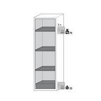 Stockage sécurisé, conforme à la réglementation en vigueur des produits dangereux, inflammables dans les zones de travail Fonction / Construction : Robuste et durable : structure extérieure solide en acier revêtu époxy, 3 charnières de fixation par porte, mécanisme de fermeture complet et éléments de sécurité protégés contre la corrosion montés hors de la zone de stockage Utilisation controlée : porte verrouillable, compatible avec fermeture centralisée Installation facile : pieds réglables intégrés Aération et ventilation : système d'aération et de ventilation intégrés pour le raccordement (diamètre 75 mm) à un dispositif technique d'évacuation d'air