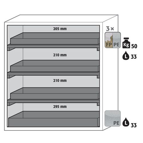 Armoire S-CLASSIC90 Maintien porte-Etagère rétention - 1196mm - Asecos