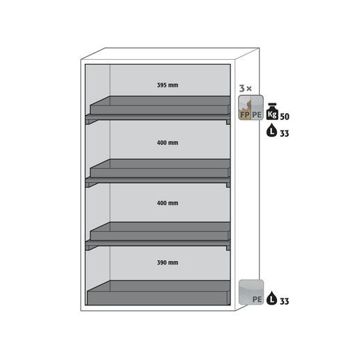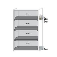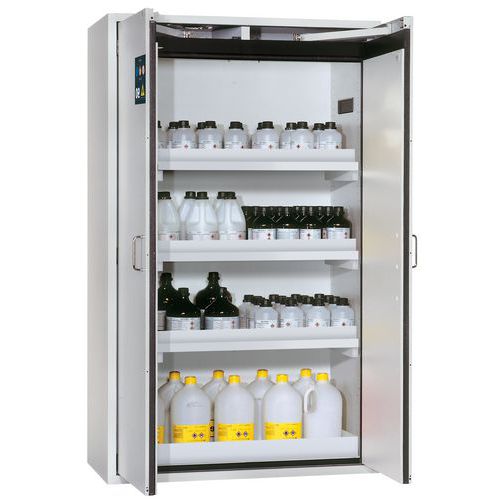 Plusieurs compartiments permettant le stockage de substances dangereuses inflammables et corrosives dans une même armoire.