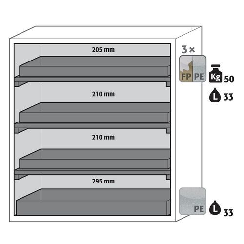 Armoire S-CLASSIC90 - Bac et étagère rétention - 1298x1196mm - Asecos