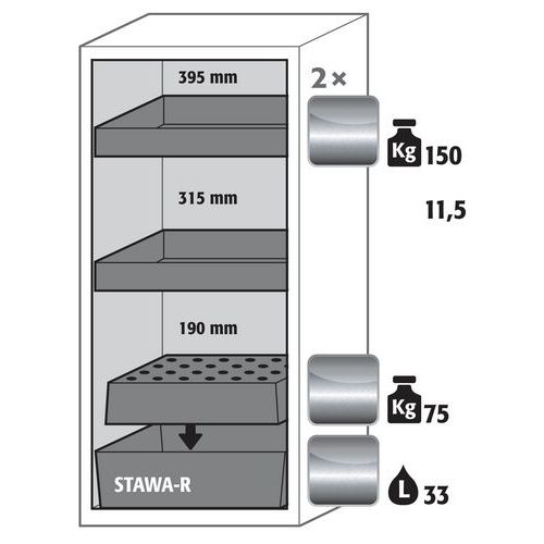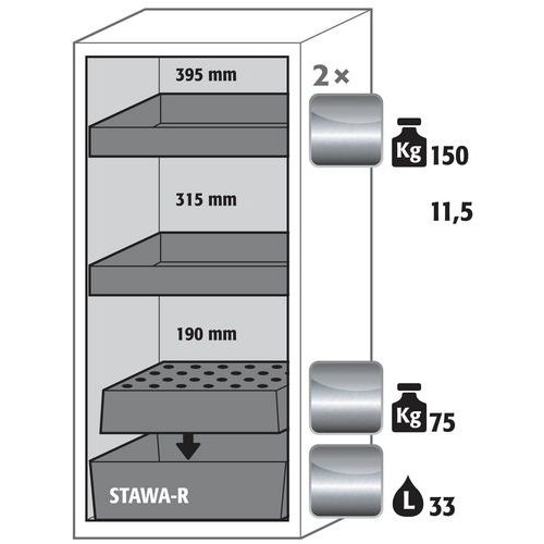 Armoire S-CLASSIC90 - Bac et étagère rétention - 1298x596mm - Asecos