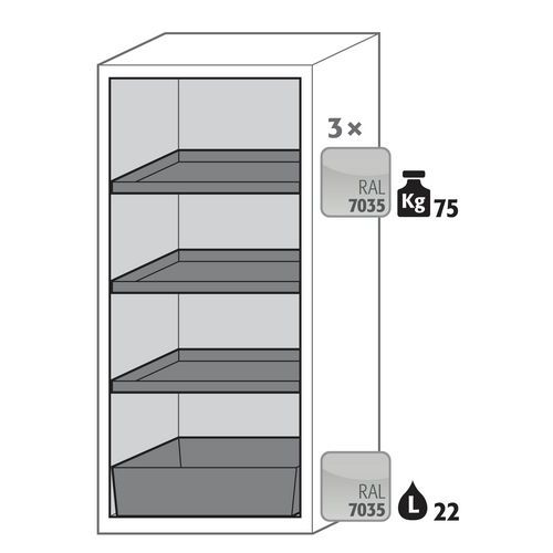 Armoire S-CLASSIC90 Maintien porte - Bac rétention - 596mm - Asecos