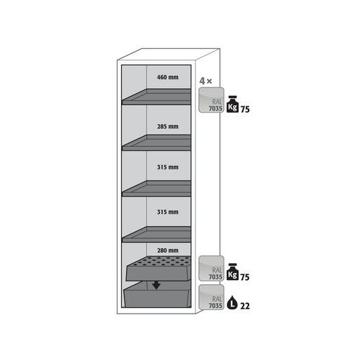 Armoire S-CLASSIC90 Maintien de porte - Bac rétention - 596mm - Asecos