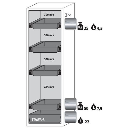 Armoire SCLASSIC90 Maintien porte et Bac rétention, Hauteur hors tout: 1968 mm, Largeur hors tout: 596 mm