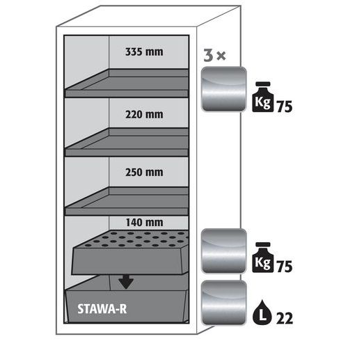 Armoire S-CLASSIC90 Maintien porte - Bac rétention - 596mm - Asecos