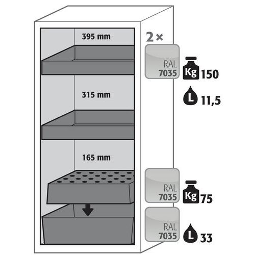 Armoire S-CLASSIC90 - Bac et étagère rétention - 1298x596mm - Asecos